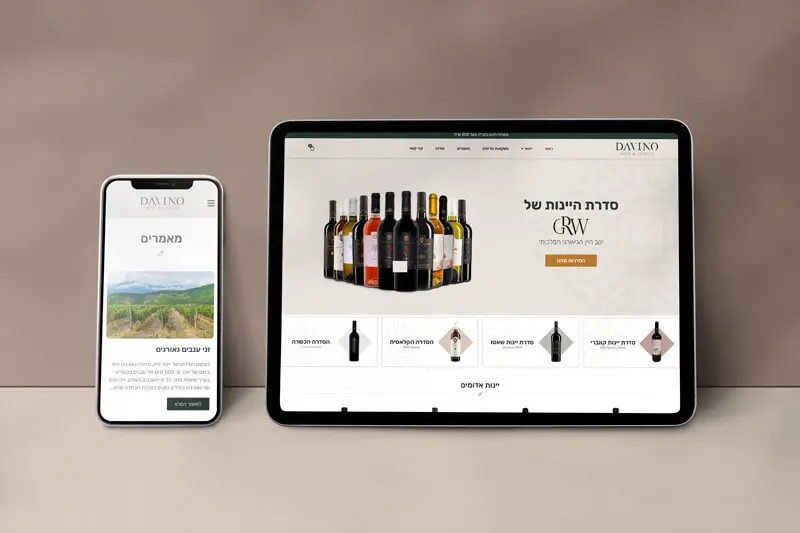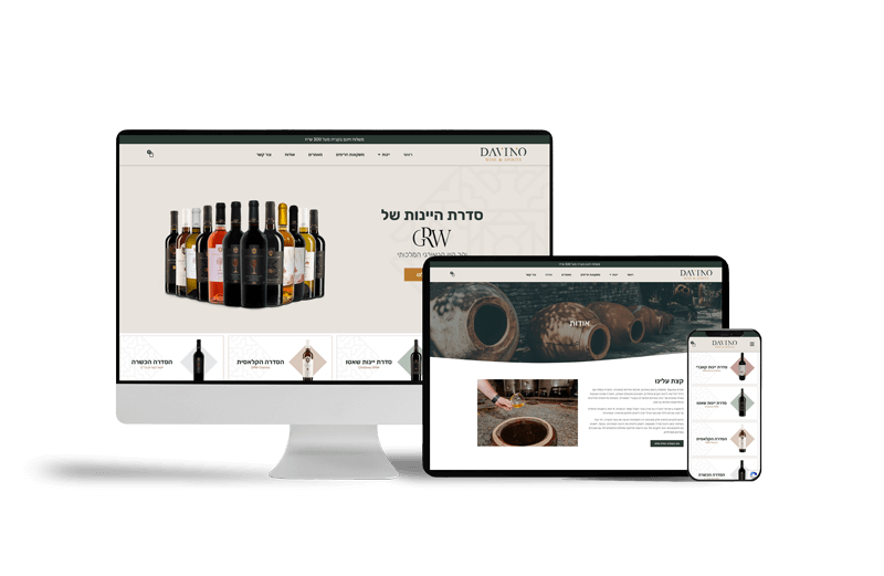 בשלב השני ביצענו עיצוב ובניית אתר מכירה רספונסבי לנייד ולמחשב אשר ישמש למכירת היינות של מותג היין בישראל.